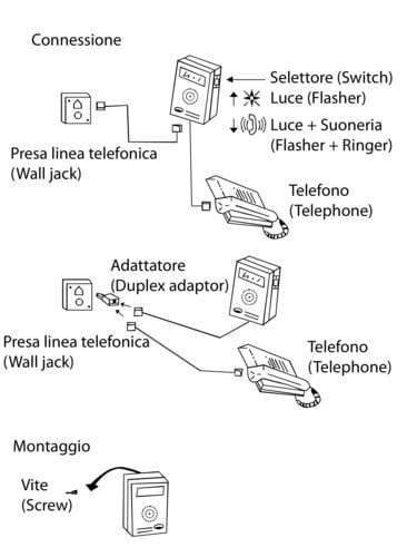 Suoneria telefonica che combina un avvisatore acustico particolarmente efficace con un flash lampeggiante. Grazie ad un selettore è possibile scegliere tra il segnale visivo oppure segnale acustico + segnale visivo.Il dispositivo si collega alla linea telefonica tramite la presa e ad un apparecchio telefonico grazie alla spina telefonica (in dotazione). Il dispositivo funziona senza batterie.** Caratteristiche Generali **Colore: Bianco** Caratteristiche Meccaniche **Materiale Corpo: Plastica