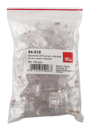 ALPHA ELETTRONICA SR - ALP94-918 SPINA RJ45 8P8C CAT6 2FILE FLEX-SOLI 50U - 94-918