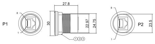 Tipologia: Cat.5eFissaggio: a pannelloSpessore pannello: 1-8mmDiametro foro: ø25mm** Caratteristiche Generali **Genere: PresaColore: NeroOrientamento: DrittoTipo Connettore A: RJ45Genere A: PresaTipo Connettore A: Presa RJ45Tipo Connettore B:RJ45Genere B: PresaTipo Connettore B: Presa RJ45** Caratteristiche Elettriche **Schermatura: no