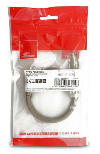 ALPHA ELETTRONICA SR - ALP95-708/005GB CAVO PATCH CAT6 0.5M U/UTP GRIGIO CU PB - 95-708/005GB