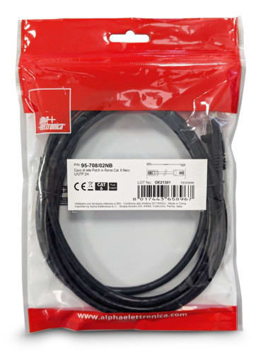 ALPHA ELETTRONICA SR - ALP95-708/02NB CAVO PATCH CAT6 2.0M U/UTP NERO CU PB - 95-708/02NB