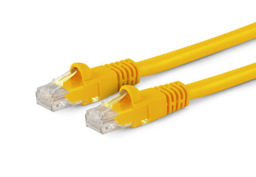 ** Caratteristiche **Cat.: 6Costruzione: U/UTPCollegamenti: DrittoStandard: EIA-TIA 568B - ISO/IEC 11801Colore cavo: GialloLunghezza Cavo: 3mGuaina cavo: PVCImpedenza: 100ohmSchermatura: Non schermatoTipo conduttori: TrefoloMateriale conduttori: Rame PuroSezione conduttori: AWG24Finitura contatto : Dorato** Connettore A **Tipo Connettore A: Spina Modulare 8P8C** Connettore B **Tipo Connettore B: Spina Modulare 8P8C