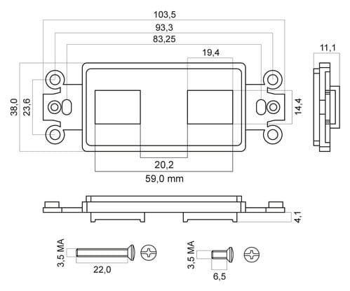 Supporto per frutti Keystone a 2 posizioni.** Colore: ** BiancoCompleto di Kit viti