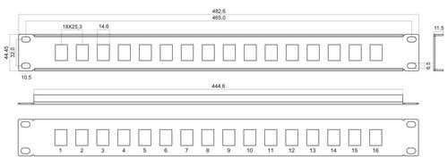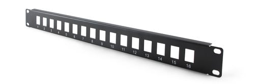 Pannello patch modulare per frutti KeystoneSistema modulare flessibilePannello in metallo 19” 1 UnitàColore NeroFrutti Keystone esclusiNon compatibile con keystone 94-940.