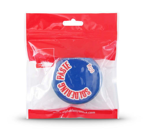 Pasta saldante per la saldatura di componenti elettronici.Il prodotto agevola l'operazione di saldatura consentendo un collegamento più rapido tra i componenti e le piazzole di saldatura.** Caratteristiche Generali **Peso: 50gI prodotti sono destinati esclusivamente all’uso professionale e industriale e non sono adatti per consumo e all’uso domestico.