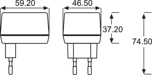 ** Caratteristiche Generali **Costruzione: pluginAdatto per batterie: 6-10 celleGrado Protezione: IP20** Caratteristiche Elettriche **Frequenza: 50HzTolleranza corrente d'uscita: ±10%Protezioni: sovratemperatura, corto circuito, inversione** Caratteristiche Meccaniche **Dimensioni (LxWxH): 59.2 x 46.5 x 37.2mmRaffreddamento: passivoConnessioni: connettore intercambiabileConnettori: 3,5mm, 5,5x2,1mm, 5,5x2,5mm, 3,5x1,3mm, 2,35x0,7mm, 4,0x1,7mm** Caratteristiche Termiche **Temperatura di lavoro: 0/30°C** Modalità di carica **Corrente costanteIndicazione di carica: Led accesoIndicazione di fine carica: non rilevataBatteria non connessa o Stand-by: Led spentoTempo di ricarica in funzione della capacità della batteria.Connettore d'uscita:Spine reversibili. Vedi dettaglio** Attenzione **Si raccomanda di caricare la batteria con una corrente pari a 1/10 della capacità nominale della batteria (C10). La funzione di fine carica è demandata all’utilizzatore che deve disconnettere la batteria manualmente.