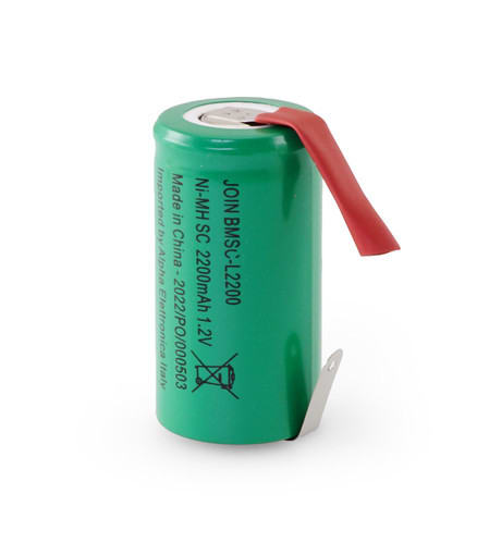 ** Caratteristiche Generali ** Codice dimensione: SC Tecnologia: Ni-Mh Codice IEC: HR22C429 Ricaricabile: si ** Caratteristiche Elettriche ** Tensione: 1.2V Capacità: 2200mAh ** Caratteristiche Meccaniche ** Dimensioni: ø22.1mm x 42mm Connessioni: lamelle