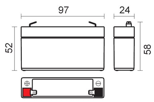 ** Caratteristiche Generali **Adatto per: UPSTecnologia: Piombo AGM** Caratteristiche Elettriche **Tensione: 6VCapacità: 1.3Ah** Caratteristiche Meccaniche **Dimensioni: 24mm x 97mm x 58mmPeso: 0.3KgConnessioni: faston 4.8mm