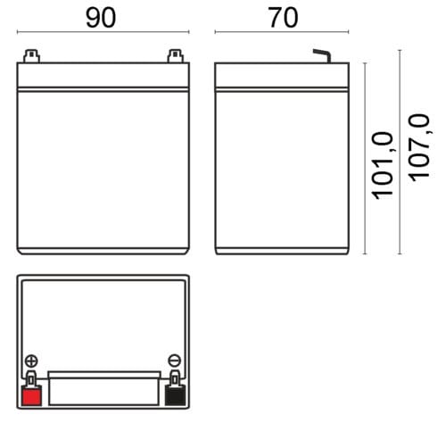 ** Caratteristiche Generali **Tecnologia: Piombo AGM** Caratteristiche Elettriche **Tensione: 12VCapacità: 5Ah** Caratteristiche Meccaniche **Dimensioni: 90mm x 70mm x 107mmPeso: 1.65KgConnessioni: faston 4.8mm