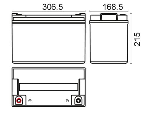 ** Caratteristiche Generali **Adatto per: UPSTecnologia: Piombo AGM** Caratteristiche Elettriche **Tensione: 12VCapacità: 100AhPotenza (15min 1,67V/cella 25°C): 380WCorrente di carica massima: 30ACorrente di scarica massima: 1000A** Caratteristiche Meccaniche **Dimensioni: 306mm x 168mm x 210mmPeso: 30Kg ± 3%Connessioni: a viteTemperatura di immagazzinamento: -20 / 60°CTemperatura di lavoro: 0 / 50°C