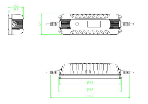 Il caricabatterie serie Procharge è un dispositivo intelligente progettato per caricare batterie PB - AGM - GEL - LiFePO4 a 4 fasi di carica con il semplice tocco di un pulsante.Tutte le fasi sono controllate da un microprocessore per caricare le batterie di motociclette e automobili che rileva le condizioni della batteria per fornire la giusta corrente e tensione alla batteria (caratteristica di carica) e che darà il miglior effetto sulla carica e garantirà la massima durata della batteria.L’ampio display retroilluminato visualizza una serie di funzioni di sicurezza, tra cui l'inversione di polarità e la protezione da cortocircuito, mantengono al sicuro sia l'utente che il veicolo.** Caratteristiche Generali **Tecnologia: switchingCostruzione: desktopTipo regolazione: CVClasse isolamento: IIAdatto per batterie: Piombo AGM, GEL, Litio LifePO4Grado Protezione: IP65** Caratteristiche Elettriche **Tensione d'ingresso: 220‑240VacFrequenza: 50HzCorrente d'uscita: 1000 - 4000mATensioned'uscita: 6 - 12VProtezioni: corto circuito, inversione** Caratteristiche Meccaniche **Dimensioni (LxWxH): 65 x 49 x 193mmRaffreddamento: passivoMateriale contenitore: PlasticoColore: NeroConnessioni: connettore intercambiabileConnettori: Pinze,Occhielli** Caratteristiche Termiche **Temperatura di lavoro: 0/40°C** Caratteristiche tecniche **- Tensione di ingresso: 220-240Vac- Frequenza tensione ingresso: 50Hz- Consumo energetico standby: ≦2.0W- Massima potenza in ingresso: ≦75W- Massima corrente in ingresso: ≦0.75A- Corrente di autoscarica: ≦1mA- Efficienza: >78%- Display: LCD retroilluminato- Tipo di batteria:STD: Batterie Piombo SLA (Sealed Lead Acid)AGM: Batterie Piombo AGM (Absorbed Glass Mat)GEL: Batterie Piombo con elettrolita GELLi: Batterie Litio Ferro Fosfato LiFePO4- Tensione nominale: 6V / 12V (Piombo), 12.8V (LiFePO4)- Selezione tensione: Manuale- Corrente di carica:STD/GEL: 7.1Vdc 1A; 14.2Vdc 1A/4AAGM*: 14.4Vdc 4ALI: 14.5Vdc 4A- Capacità manutenzione Batterie Pb :C.MIN 5Ah - C. MAX (Carica) 120AhC.MIN 5Ah - C.MAX (Mantenimento) 180Ah- Capacità manutenzione Batterie Li :C.MIN 1Ah - C. MAX (Carica) 120AhC.MIN 1Ah - C.MAX (Mantenimento) 180Ah- Tipo / Capacità batteria:Chimica LI - Corrente 1A - Capacitàcarica 1-30Ah min-max - Capacità mantenimento 1-45Ah min-maxChimica LI - Corrente 4A - Capacità carica 4-120Ah min-max - Capacità mantenimento 4-180Ah min-maxChimica STD/AGM - Corrente 1A - Capacità carica 5-30Ah min-max - Capacità mantenimento 5-45Ah min-maxChimica STD/AGM - Corrente 4A - Capacità carica 20-120Ah min-max - Capacità mantenimento 20-180Ah min-max- Pulsante selezione e carica:6V: STD 1A12V: STD 1A/4A, AGM 4A, LI 4A- Ricarica: 4 fasi smart (Inizializzazione - Carica principale - Assorbimento - Mantenimento)- Modalità Ricarica per Climi freddi: Sì (