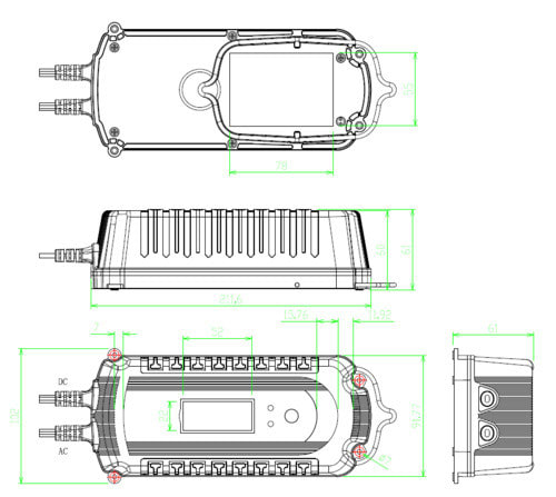Il caricabatterie serie Procharge è un dispositivo intelligente progettato per caricare batterie PB - AGM - GEL - LiFePO4 a 9 fasi di carica con il semplice tocco di un pulsante.Tutte le fasi sono controllate da un microprocessore per caricare le batterie di motociclette, automobili e camion che rileva le condizioni della batteria per fornire la giusta corrente e tensione alla batteria (caratteristica di carica) e che darà il miglior effetto sulla carica e garantirà la massima durata della batteria.L’ampio display retroilluminato visualizza una serie di funzioni di sicurezza, tra cui l'inversione di polarità e la protezione da cortocircuito, mantengono al sicuro sia l'utente che il veicolo.** Caratteristiche Generali **Tecnologia: switchingCostruzione: desktopClasse isolamento: IIAdatto per batterie: Piombo AGM, GEL, Litio LifePO4Grado Protezione: IP65** Caratteristiche Elettriche **Tensione d'ingresso: 220‑240VacFrequenza: 50HzCorrente d'uscita: 2000 - 7200mATensione d'uscita: 12 - 24VProtezioni: sovratemperatura, corto circuito, inversione** Caratteristiche Meccaniche **Dimensioni (LxWxH): 91.5 x 59.5 x 211.6mmRaffreddamento: passivoMateriale contenitore: PlasticoColore: NeroConnettori: Pinze, Occhielli** Caratteristiche Termiche **Temperatura di lavoro: 0/40°C** Caratteristiche tecniche **- Tensione di ingresso: 220-240Vac- Frequenza tensione ingresso: 50Hz- Consumo energetico standby: ≦2.0W- Massima potenza in ingresso: ≦150W- Massima corrente in ingresso: ≦1.4A- Corrente di autoscarica: ≦1mA- Efficienza: >78%- Display: LCD retroilluminato- Indicatori di stato: Ricarica / Guasto- Tipo di batteria:STD: Batterie Piombo SLA (Sealed Lead Acid)AGM: Batterie Piombo AGM (Absorbed Glass Mat)GEL: Batterie Piombo con elettrolita GELLi: Batterie Litio Ferro Fosfato LiFePO4- Tensione nominale: 12V / 24V (Piombo) 12.8 / 25.6V (LiFePO4)- Selezione tensione: Manuale- Corrente di carica:STD/GEL:14.4Vdc 2A/7.2A, 28.8Vdc 2A/3.6AAGM*: 14.7Vdc 2A/7.2A, 29.4dc 2A/3.6ALI: 14.5Vdc 2A/7.2A, 29Vdc 2A/3.6ARECON AGM*:14.7Vdc 7.2ASUPPLY 13.8Vdc 5A max- Capacità manutenzione Batterie Pb :C.MIN 5Ah - C. MAX (Carica) 144AhC.MIN 5Ah - C.MAX (Mantenimento) 225Ah- Capacità manutenzione Batterie Li :C.MIN 2Ah - C. MAX (Carica) 144AhC.MIN 2Ah - C.MAX (Mantenimento) 225Ah- Tipo / Capacità batteria:Chimica LI - Corrente 2A - Capacità carica 2-40Ah min-max - Capacità mantenimento 2-90Ah min-maxChimica LI - Corrente 3,6A - Capacità carica 3,6-108Ah min-max - Capacità mantenimento 3,6-162Ah min-maxChimica LI - Corrente 7,2A - Capacità carica 7,2-144Ah min-max - Capacità mantenimento 7,2-225Ah min-maxChimica STD/AGM - Corrente 2A - Capacità carica 5-40Ah min-max - Capacità mantenimento 5-90Ah min-maxChimica STD/AGM - Corrente 3,6A - Capacità carica 18-108Ah min-max - Capacità mantenimento 18-162Ah min-maxChimica STD/AGM - Corrente 7,2A - Capacità carica 36-144Ah min-max - Capacità mantenimento 36-225Ah min-max- Pulsante selezione e carica:12V: STD 2A/7,2A, AGM* 2/7,2A, LI 2A/7,2A, RECON AGM*24V: STD 2A/3,6A, AGM* 2/3,6A, LI 2A/3,6ASUPPLY:13.8V/5A- Ricarica: 9 fasi smart (Inizializzazione - Desolfatazione - Avvio graduale - Carica principale - Assorbimento - Ricondizionamento - Analisi - Mantenimento - Caricata pulsata)- Modalità Alimentazione tampone: Sì (13,8Vdc fissi, max 5A)- Modalità Ricondizionamento: Sì (per batterie AGM)- Modalità Ricarica per Climi freddi: Sì (