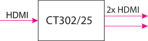 Il distributore di segnale CT302/25 suddivide l’ingresso HDMI in 2 uscite per inviare il segnale sorgente in ingresso ad altrettante uscite. Le due uscite sono amplificate ed equalizzate per ottenere le migliori prestazioni.Supporta la tecnologia HDR (High Dynamic Range) che permette, collegato a dispositivi che supportano la stessa tecnologia, di guardare contenuti con una gamma di colori più vicini alla realtà percepita dall'occhio umano.Lo scaler interno consente di gestire in uscita monitor/TV con risoluzioni differenti.Attenzione: solo il formato video HDMI 4K@30/50/60Hz (spazio colore YUV 4:4:4 oppure 4:2:0) può essere scalato a 1080p@30/50/60Hz. Lo scaler non supporta il down scaling di segnali con spazio colore RGB.** Caratteristiche **Tipologia: SplitterIngresso: 1 HDMI®Uscita: 2 HDMI®Compatibile 3D: siCompatibile 4K: siProfondità colore: 12bit/canaleRisoluzione massima: 4K @ 60HzRisoluzioni supportate: 480i @ 50Hz, 480i @ 60Hz, 480p @ 50Hz, 480p @ 30Hz, 480p @ 60Hz, 576i @ 50Hz, 576i @ 60Hz, 576p @ 50Hz, 576p @ 60Hz, 720p @ 50Hz, 720p @ 60Hz, 1080i @ 50Hz, 1080i @ 60Hz, 1080p @ 50Hz, 1080p @ 30Hz, 1080p @ 60Hz, 2160p UHD @ 24Hz, 2160p UHD @ 30Hz, 2160p UHD @ 50Hz, 2160p UHD @ 60Hz, 2160p 4K @ 24Hz, 2160p 4K @ 30Hz, 2160p 4K @ 50Hz, 2160p 4K @ 60HzFunzioni aggiuntive: HDR, Lip syncInstallazione: Plug-and-playInterfaccia di controllo: Tasti fisiciSupporto HDCP: HDCP 2.2Supporto formati audio: DTS-HD Master Audio, Dolby True HD, LPCM 7.1** Caratteristiche Elettriche **Tipo Alimentazione: AlimentatoreIndicatore/i led di stato: Si** Specifiche HDMI **- Conforme HDCP 2.2- Blu-ray e HD DVD in Full HD (1080p)- Spazio colore RGB, YCbCr, xvYCC- Deep Color- Audio LPCM a 8 canali, 192 kHz, 24bit- Supporto DVD Audio- Supporto Super Audio CD- Compatibile Dolby TrueHD- Compatibile DTS HD Master Audio- Auto lip-sync- Trasmissione dei comandi CEC (CEC Bypass)** Contenuto confezione **1x Distributore di segnale1x Alimentatore 5Vdc 1A1x Cavo di alimentazione Mini USBNota: in modalità SCALER, lo splitter non permette la gestione dell’HDR.Lo splitter trasferisce in uscita l'HDR solo a patto che tutte le TV connesse siano 4K e che entrambe supportino l'HDR. Attenzione: spesso l'HDR deve essere abilitato nel menù di configurazione della TV.