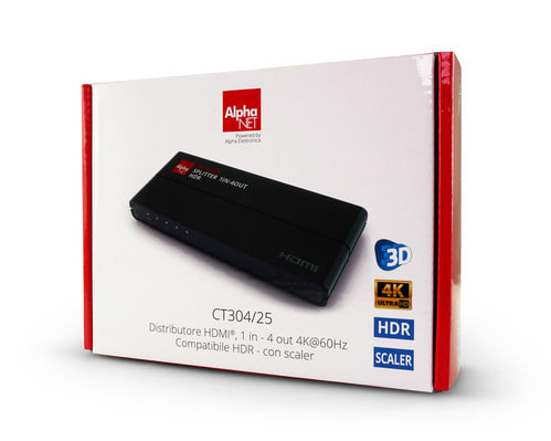 ALPHA ELETTRONICA SR - ALPCT304/25 HDMI® Splitter, 1 in - 4 out 4K@60Hz - HDR - With scaler - CT304/25
