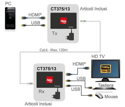 ALPHA ELETTRONICA SR - ALPCT375/13 EXTENDER HDMI OVERIP USB KVM 120M - CT375/13