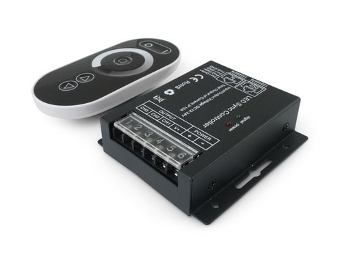 ** Caratteristiche **Centralina di controllo per sorgenti luminose a led monocromatiche.L'apposito telecomando RF consente il controllo dell'intensità luminosa oltre che il controllo on/off.Inoltre il dispositivo mantiene memoria dell'ultimo modo di funzionamento impostato anche dopo aver spento e riacceso l'alimentazione.Più controller possono lavorare tra di loro simultaneamente se connessi tramite un cavo RJ45.** Caratteristiche Generali **Funzione: ControllerAdatto per: MonocoloreMetodo di controllo: RF** Caratteristiche Elettriche **Tipo regolazione: Tensione costante (CV)Tensione d'ingresso: 12/24VTensione d'uscita: come ingressoTipo di uscita: morsettiMetodo di connessione: anodo comuneCorrente/Ch: 10An. canali: 3Potenza nominale (12V): 360WPotenza nominale (24V): 720W** Caratteristiche Meccaniche **Lunghezza: 91mmLarghezza: 90mmAltezza: 24mmGrado di protezione: IP20Materiale corpo: Alluminio verniciatoColore corpo: Nero** Caratteristiche Termiche **Temp. di funzionamento: -10 / 40°C** Note **- I controller della serie Sync Tecnology sono ricevitori universali se non programmati.Questo significa che tutti i ricevitori sono controllabili da qualsiasi telecomando della stessa serie.Per sincronizzarli in modo ottimale possiamo sfruttare la tecnologia SyncTecnology collegando i ricevitori tramite un cavo Cat.5e o Cat.6 utilizzano le porte RJ45 presenti sul dispositivo.Il controller che decidiamo essere il principale dovrà essere collegato alla porta SignalOUT mentre i controller che decidiamo essere slave andranno connessi alla porta SignaIN.Una volta collegati in questo modo i controller slave si comportano da amplificatori e saranno perfettamente sincronizzati.E' possibile abbinare il controller-ricevitore a un telecomando tramite una procedura specifica e ti invitiamo a seguire il video dedicato per vedere come fare.- L'alimentatore dovrà essere scelto in funzione del tipo di carico led utilizzato per tensione e corrente.- Utilizzare un alimentatore con potenza nominale maggiore rispetto al carico led da alimentare (circa 30%).
