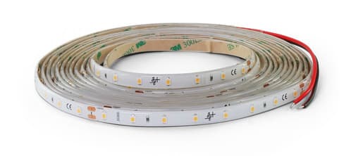 ** Caratteristiche Generali ** Applicazione: Per illuminazione Tempo di vita L70B50: 20000h Numero cicli di accensione: 10000 cicli Fattore di sopravvivenza: 0.9 Tipo nastro: Monocolore Colore Supporto: Bianco Tipo di led: smd 2835 0.2W n. Led al metro: 64 led/m Lunghezza max in cascata: 5m Rischio fotobiologico: Esente ** Caratteristiche di Illuminazione ** Colore: Bianco caldo Flusso Nastro Led: 500lm/m Flusso @ 50cm: 250lm CRI: 90 Angolo di emissione: 120° Warm-up (60%): 0.1s Fattore mantenimento flusso: 0.96 Uniformità colore (SDCM): 6 ** Caratteristiche Elettriche ** Classe energetica: F Potenza Nastro Led: 4.8W/m Potenza 50cm: 2.4W Potenza unità minima: 0.6W Tens. funzionamento DC: 24Vdc Dimmerabile: si Alimentatore: Esterno (non incluso) ** Caratteristiche Sorgente Luminosa ** Temp. Colore: 2700K ** Caratteristiche Meccaniche ** Lunghezza nastro: 5m N. Led/taglio: 8 Lunghezza taglio minima: 125mm Larghezza: 5000mm Spessore: 3.5mm Altezza: 8mm Fissaggio: Biadesivo 3M Grado di protezione: IP65 Tipo di protezione: Resina Connessioni: Cavo libero ** Caratteristiche Termiche ** Temp. di funzionamento: -10 / 40°C