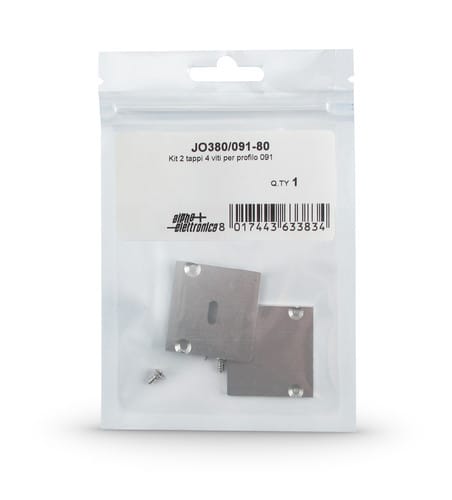 Il kit comprende:- 1 terminale di chiusura senza asola- 1 terminale di chiusura con asola- 4 viti 2,2x6,5Adatti per profili JO380/091.** Caratteristiche Meccaniche **Tipo: ChiusuraFissaggio: Tramite vitiMateriale corpo: Alluminio anodizzatoColore corpo: Naturale