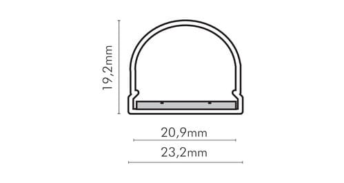 ** Caratteristiche generali **Kit composto da:-n. 1 profilo di alluminio da 2m,-n. 1 copertura da 2m-n. 2 terminali di chiusura in plastica-n. 4 graffette di fissaggio** Caratteristiche Elettriche **Potenza dissipabile (35°C): 14W/m** Caratteristiche Meccaniche **Lunghezza profilo: 2mLarghezza: 23.2mmLarghezza interna: 20.9mmAltezza: 19.2mmGrado di protezione: IP65Materiale corpo: AlluminioColore corpo: NaturaleDiffusore: Policarbonato opaco** Attenzione **Il profilo illustrato è uncomponente. Il suo corretto funzionamento con nastri led o moduli led dipende da importanti requisiti di installazione e dimensionamento. La potenza dissipabile è stata calcolata considerando una temperatura ambiente non superiore a 35°C in aria. Condizioni di installazione differenti devono essere opportunamente verificate da personale tecnico. Utilizzare la copertura solo con nastri led IP20.Alpha Elettronica declina ogni responsabilità per danni o malfunzionamenti derivati da un uso inappropriato delprofilo.Il profilo illustrato non é compatibile con dimmer metal touch JO-CONTR-014.Alpha Elettronica declina ogni responsabilità per danni o malfunzionamenti derivati da un uso inappropriato del profilo.Il montaggio della copertura plastica deve essere effettuata a scorrimento.Il profilo illustrato viene definito IP65 esclusivamente installandolo con i terminali di chiusura sigillati. In caso di mancata installazione di tali terminali il grado di protezione decade a IP20.