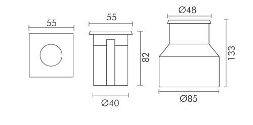I faretti della serie Walk integrano una nuova tecnologia con sistema water stop, in grado di ridurre il vapore acqueo che può formarsi durante l'utilizzo. ** Caratteristiche Generali ** Tempo di vita L70B50: 30000h Numero cicli di accensione: 15000 cicli Numero Led: 1 Rischio fotobiologico: Esente ** Caratteristiche di Illuminazione ** Colore: Bianco caldo Flusso: 150lm CRI: 80 Angolo di emissione: 30° ** Caratteristiche Elettriche ** Potenza: 2.5W Tens. funzionamento DC: 24Vdc Dimmerabile: no Alimentatore: Esterno (non incluso) ** Caratteristiche Sorgente Luminosa ** Temp. Colore: 3000K ** Caratteristiche Meccaniche ** Lunghezza: 55mm Larghezza: 55mm Altezza: 82mm Fissaggio: Incasso con cassaforma inclusa Montaggio: A pavimento Foro incasso: ø44mm Grado di protezione: IP67 Materiale corpo: Alluminio verniciato Colore corpo: Grigio Cornice: Acciaio Diffusore: Vetro temprato Capacità di carico: ø10mm 1330Kg Connessioni: Cavo libero Lunghezza cavo: 0.5m ** Caratteristiche Termiche ** Temp. di funzionamento: -20 / 40°C Faretto con driver elettronico integrato con ingresso capacitivo. Utilizzare con alimentatore 3 volte la potenza nominale.
