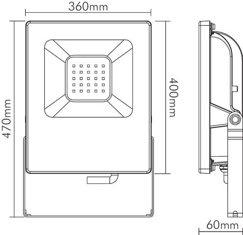 ** Caratteristiche Generali **Tempo di vita L70B50: 30000hNumero cicli di accensione: 15000 cicliRischio fotobiologico: Esente** Caratteristiche di Illuminazione **Colore: Bianco naturaleFlusso: 20000lmCRI: 80Angolo di emissione: 120°Starting time: 0.5s** Caratteristiche Elettriche **Potenza: 200WTens. funzionamento AC: 230VacTolleranza d'ingresso: ±10%Frequenza: 50HzDimmerabile: noClasse isolamento: IAlimentatore: Integrato** Caratteristiche Sorgente Luminosa **Temp. Colore: 4000K** Caratteristiche Meccaniche **Lunghezza: 60mmLarghezza: 360mmAltezza: 470mmFissaggio: Staffe IncluseMontaggio: A pareteGrado di protezione: IP65Materiale corpo: Alluminio verniciatoColore corpo: NeroDiffusore: Vetro satinatoConnessioni: Cavo liberoTipologia cavo: H05RNFLunghezza cavo: 0.5m** Caratteristiche Termiche **Temp. di funzionamento: -20 / 40°C