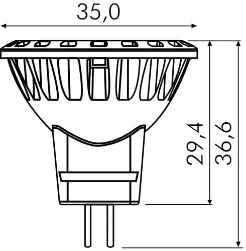 ** Caratteristiche Generali **Tipo lampada: MR11Tempo di vita L70B50: 20000hNumero cicli di accensione: 10000 cicliFattore di sopravvivenza: 0.9Tipo di led: smd 5050Numero Led: 3Rischio fotobiologico: Esente** Caratteristiche di Illuminazione **Colore: Bianco freddoFlusso: 185lmCRI: 80Angolo di emissione: 100°Starting time: 0.2sFattore mantenimento flusso: 0.95Uniformità colore (SDCM): 6** Caratteristiche Elettriche **Classe energetica: GPotenza: 2.5WTens. funzionamento DC: 12Vdc (10‑30Vdc)Tens. funzionamento AC: 12Vac (8‑15Vac)Frequenza: 50-60HzDimmerabile: no** Caratteristiche Sorgente Luminosa **Temp. Colore: 6500K** Caratteristiche Meccaniche **Attacco: G4Lunghezza: 35mmLarghezza: 35mmAltezza: 37mmDiametro: ø35mmDiffusore: PMMA opaco** Caratteristiche Termiche **Temp. di funzionamento: -10 / 40°C** Attenzione **E' possibile alimentare la lampada tramite:- Alimentatore switching 12Vdc,- Trasformatore lineare/toroidale 12Vac (50Hz).