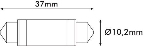 ** Caratteristiche Generali **Tipo lampada: FestoonSostituisce: C5W, C11Tempo di vita L70B50: 20000hNumero cicli di accensione: 10000 cicliFattore di sopravvivenza: 1Tipo di led: smd 3014Numero Led: 6Rischio fotobiologico: Esente** Caratteristiche di Illuminazione **Colore: Bianco freddoFlusso: 40lmCRI: 80Angolo di emissione: 120°Starting time: 0.2sFattore mantenimento flusso: 0.97Uniformità colore (SDCM): 6** Caratteristiche Elettriche **Classe energetica: FPotenza: 0.4WTens. funzionamento DC: 12Vdc (10‑30Vdc)Dimmerabile: no** Caratteristiche Sorgente Luminosa **Temp. Colore: 6500K** Caratteristiche Meccaniche **Attacco: SV8.5Lunghezza: 10mmLarghezza: 10mmAltezza: 37mmDiametro: ø10.2mm** Caratteristiche Termiche **Temp. di funzionamento: -20 / 40°C** Attenzione **Non utilizzare con dimmer o trasformatori elettronici.