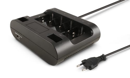 ** Caratteristiche **Adatto per caricare 1-4 celle AA, AAA, C, D + 1-2 celle AA, AAA, 1-2 celle 9V e USB 5V.E' possibile ricaricare le batterie singolarmente grazie ai canali indipendenti.** Dati tecnici **Tensione d'ingresso: 230Vac ±10%Frequenza: 50HzCorrente d'uscita 1-4 celle AA-AAA-C-D: 1000mA (500mA se connesso USB)Corrente d'uscita 5-6 celle AA-AAA: 600mA (300mA se connesso USB)Corrente d'uscita 9V: 30mACorrente d'uscita USB: 1000mATempo di ricarica in funzione della capacità della batteria.** Indicazioni Led **Led spenti: StandbyLed Rosso: indica che la funzione di carica è in corso.Led Verde: carica completaLed rosso lampeggiante: Batterie guasteLed verde lampeggiante: Modalità di carica lentaUna volta inserita una batteria all'interno degli appositi spazi il led di segnalazione indicherà:-Verde: capacità alta- Arancio: capacità media- Rosso: capacità bassa