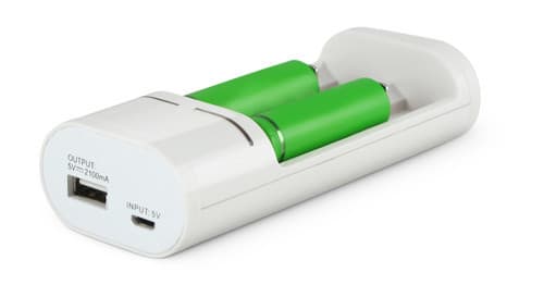 Formato batterie:Ni-Mh: AA, AAALi-ion: 14500, 16650, 17500, 17670,18500, 18650, 22650Uscita principale:2x3,7V 1A (Li-ion)2x1,4V 1A (Ni-Mh)Uscita ausiliaria USB:5Vdc - 2,1A maxInnesti a molla** Caratteristiche Generali **Formato pila: AA, AAANumero pile: 2Tipo batteria: Li-Ion/Ni-MhRicaricabile: SiColore: Bianco** Ingresso **Tensione d'ingresso: 5VdcTipo Connettore ingresso: Micro USB tipo "B"** Uscita **Tipo Connettore uscita: USB tipo "A"** Caratteristiche Meccaniche **Dimensioni (LxWxH): 110.9mm x 48mm x 27.3mmMateriale contenitore: PlasticoLa confezione ** NON ** include:- Batterie- Cavetto di alimentazione- Alimentatore 5V 2.1A non incluso** Attenzione **Collegare esclusivamente batterie ricaricabili.Uscita ausiliaria USB A, attiva solo in fase di carica.Il dispositivo non funziona da power bank
