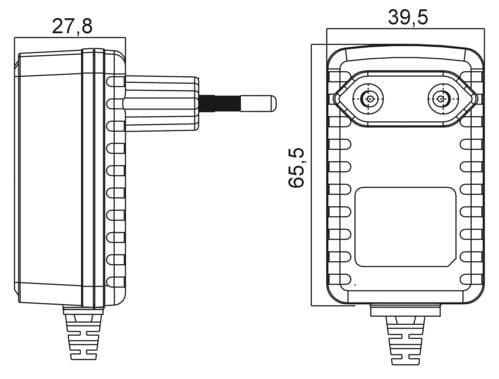 ** Caratteristiche Generali **Tecnologia: switchingCostruzione: pluginTipo regolazione: CVClasse isolamento: IIGrado Protezione: IP20** Caratteristiche Elettriche **Tensione d'ingresso: 100‑240VacTolleranza d'ingresso: -10% +6%Frequenza: 50/60HzPotenza: 24WTensione d'uscita: 12VCorrente d'uscita: 2000mARegolazione di carico: ±5%Regolazione di linea: ±5%Tolleranza tensione d'uscita: ±5%Ripple: