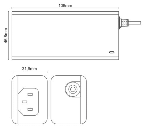** Caratteristiche Generali ** Tecnologia: switching Costruzione: desktop Tipo regolazione: CV Classe isolamento: I Grado Protezione: IP20 ** Caratteristiche Elettriche ** Tensione d'ingresso: 230Vac (100‑240Vac) Tolleranza d'ingresso: ±10% Frequenza: 50/60Hz Potenza: 60W Tensione d'uscita: 12V Corrente d'uscita: 5000mA Tensione d'uscita: 11.4 - 12.6V Regolazione di linea: ±0.5% Ripple: