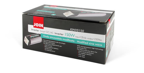 Adatto per carichi resistivi. Inverter adatto per impianto fotovoltaico ad isola (stand-alone). ** Caratteristiche Generali ** Tipologia inverter: semplice ** Caratteristiche Inverter ** Forma d'onda in uscita: Sinusoidale modificata Frequenza: 50Hz Tensione d'ingresso: 12Vdc Tensione d'uscita: 230Vac Potenza d'uscita di picco: 450W Potenza d'uscita nominale: 150W Efficienza massima: 80% Corrente in ingresso: 12.5A Consumo a vuoto in stand by: