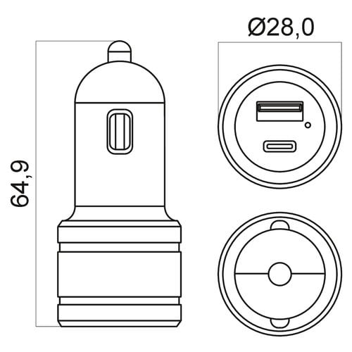 ** Caratteristiche Generali **Tecnologia: dc-dc switching non isolatoCarica rapida: Power Delivery 3.0** Caratteristiche Elettriche **Collegamento interno: negativo comuneTensione d'ingresso: 12‑24VdcPotenza: 30WCorrente d'uscita: 3000mATensione d'uscita: 5 - 12VRegolazione di carico: ±5%Tolleranza tensione d'uscita: ±10%Protezioni: corto circuito** Caratteristiche Meccaniche **Dimensioni (LxWxH): 64.9 x 28 x 28mmRaffreddamento: passivoMateriale contenitore: PlasticoColore: NeroConnettori: USB tipo"A", USB tipo"C"** Caratteristiche Termiche **Temperatura di lavoro: 0/30°C