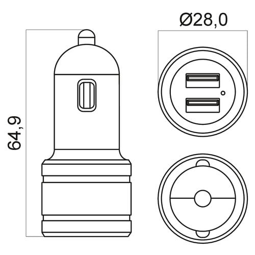 ** Caratteristiche Generali **Tecnologia: dc-dc switching non isolatoCarica rapida: Quick Charge 3.0** Caratteristiche Elettriche **Collegamento interno: negativo comuneTensione d'ingresso: 12‑24VdcPotenza: 18WCorrente d'uscita: 3000mATensione d'uscita: 3.6 - 12VRegolazione di carico: ±5%Tolleranza tensione d'uscita: ±10%Protezioni: corto circuito** Caratteristiche Meccaniche **Dimensioni (LxWxH): 64.9 x 28 x 28mmRaffreddamento: passivoMateriale contenitore: PlasticoColore: NeroConnettori: USB tipo"A"** Caratteristiche Termiche **Temperatura di lavoro: 0/30°C