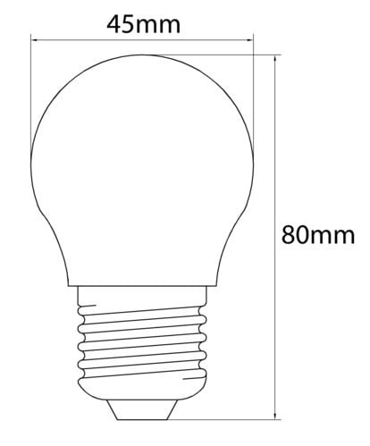 ** Caratteristiche Generali **Tipo lampada: Mini-BulboTempo di vita L70B50: 20000hNumero cicli di accensione: 10000 cicliTipo di led: FilamentoRischio fotobiologico: Esente** Caratteristiche di Illuminazione **Colore: GialloCRI: 80Angolo di emissione: 360°Starting time: 0.2s** Caratteristiche Elettriche **Potenza: 4.5WTens. funzionamento AC: 230VacTolleranza d'ingresso: ±10%Frequenza: 50-60HzDimmerabile: no** Caratteristiche Meccaniche **Attacco: E27Altezza: 80mmDiametro: ø45mmDiffusore: Vetro colorato** Caratteristiche Termiche **Temp. di funzionamento: -10 / 40°C