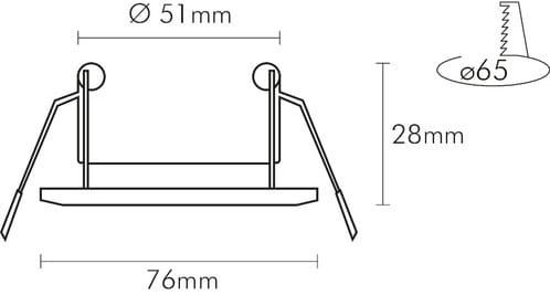 CaratteristichePorta lampada professionale in metallo adatto per installazioni da incasso.Fissaggio lampada tramite molletta.Adatto per uso interno.** Caratteristiche Elettriche **Potenza max installabile: 50W** Caratteristiche Meccaniche **Lunghezza: 76mmLarghezza: 76mmAltezza: 28mmForo incasso: ø65mmMateriale corpo: AcciaioColore corpo: BiancoFinitura: LucidaOrientabile: no