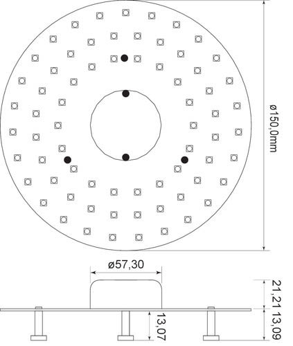 Circolina led con alimentatore incluso.** Caratteristiche Generali **Tempo di vita L70B50: 20000hNumero cicli di accensione: 10000 cicliFattore di sopravvivenza: 0.9Tipo di led: smd 2835Numero Led: 80Rischio fotobiologico: Esente** Caratteristiche di Illuminazione **Colore: Bianco naturaleFlusso: 1850lmCRI: 80Angolo di emissione: 120°Warm-up (60%): 0.2sFattore mantenimento flusso: 0.96Uniformità colore (SDCM): 6** Caratteristiche Elettriche **Classe energetica: FPotenza: 18WFattore di potenza PF: 0.55Fattore di sfasamento DF: 0.7Tens. funzionamento AC: 230VacTolleranza d'ingresso: ±10%Frequenza: 50-60HzDimmerabile: noClasse isolamento: IIAlimentatore: Esterno (incluso)** Caratteristiche Sorgente Luminosa **Temp. Colore: 4000K** Caratteristiche Meccaniche **Attacco: CavettoLunghezza: 150mmLarghezza: 150mmAltezza: 22mmDiametro: ø150mmGrado di protezione: IP20Diffusore: Nessuno** Caratteristiche Termiche **Temp. di funzionamento: -10 / 40°CContenuto Confezione-Modulo led- n3 calamite di fissaggio