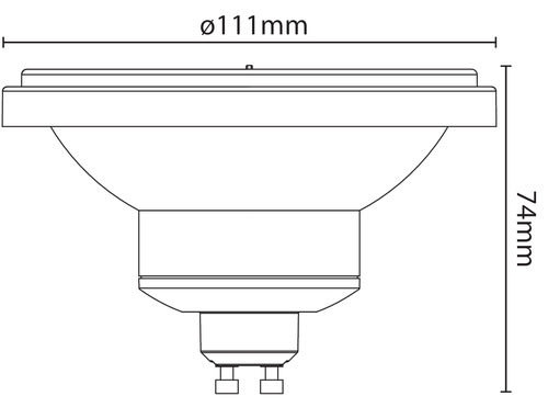 ** Caratteristiche Generali **Tipo lampada: AR111Tempo di vita L70B50: 15000hNumero cicli di accensione: 10000 cicliFattore di sopravvivenza: 0.9Rischio fotobiologico: Esente** Caratteristiche di Illuminazione **Colore: Bianco caldoFlusso: 1100lmCRI: 80Angolo di emissione: 35°Starting time: 0.2sFattore mantenimento flusso: 0.96Uniformità colore (SDCM): 6** Caratteristiche Elettriche **Classe energetica: FPotenza: 13WFattore di sfasamento DF: 0.7Tens. funzionamento AC: 230VacTolleranza d'ingresso: ±10%Frequenza: 50-60HzDimmerabile: no** Caratteristiche Sorgente Luminosa **Temp. Colore: 3000K** Caratteristiche Meccaniche **Attacco: GU10Lunghezza: 111mmLarghezza: 111mmAltezza: 75mmDiametro: ø111mmColore corpo: Bianco** Caratteristiche Termiche **Temp. di funzionamento: -10 / 40°C