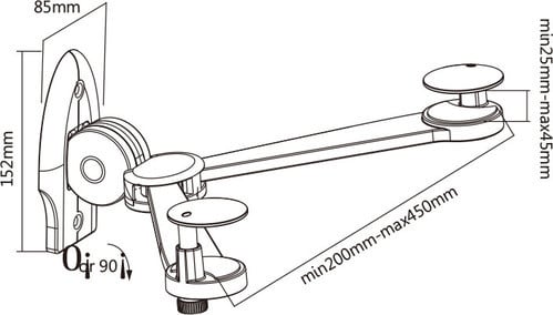 Supporto da muro pieghevole in plastica.Adatto per appoggiare un dispositivo audio-video alto 24-45mm e largo 200-450mm.** Caratteristiche Generali **Tipologia montaggio: Da pareteEstensione: NessunaRotazione (Pivot): 0°Orientamento (Swivel): 0°Colore: Nero** Caratteristiche Meccaniche **Portata: 3KgBolla di livello: NoSistema di bloccaggio: NoGestione cavi: NoInnesto a baionetta: NoKit di montaggio: Incluso