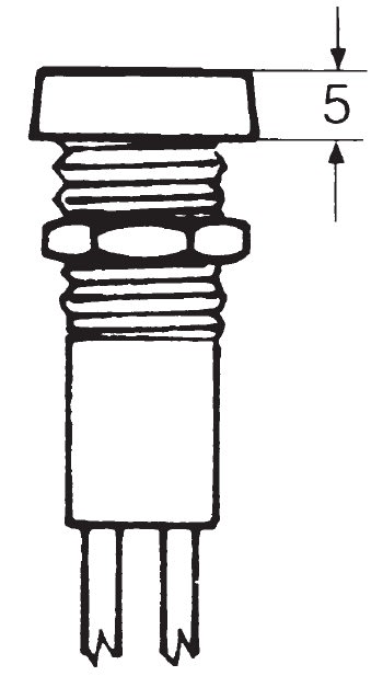 Corpo filettato in policarbonato, completo di rondella zigrinata a vite. Con cavetti PVC 0,50 mm² - lunghezza 200 mm.Gemma alta