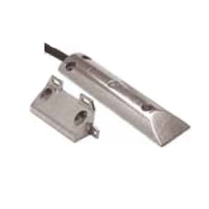 Contatto magnetico per porte basculanti. Fissaggio a pavimento. In alluminio pressofuso. Connessione a filo. Con loop filo antimanomissione (tamper). Con guaina protezione cavo