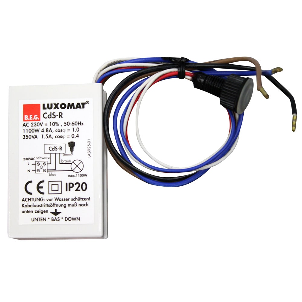 Interruttore crepuscolare con interruttore a relè. Per l’utilizzo in apparecchi e in scatole di derivazione. Valore della luce modificabile. Il cavo di connessione tra il sensore e il gruppo è lungo circa 15 cm e può essere esteso per un Massimo di 1,5 m. Settori d’impiego: condomini, ingressi, scale dove è rischiesta l’illuminazione permanente