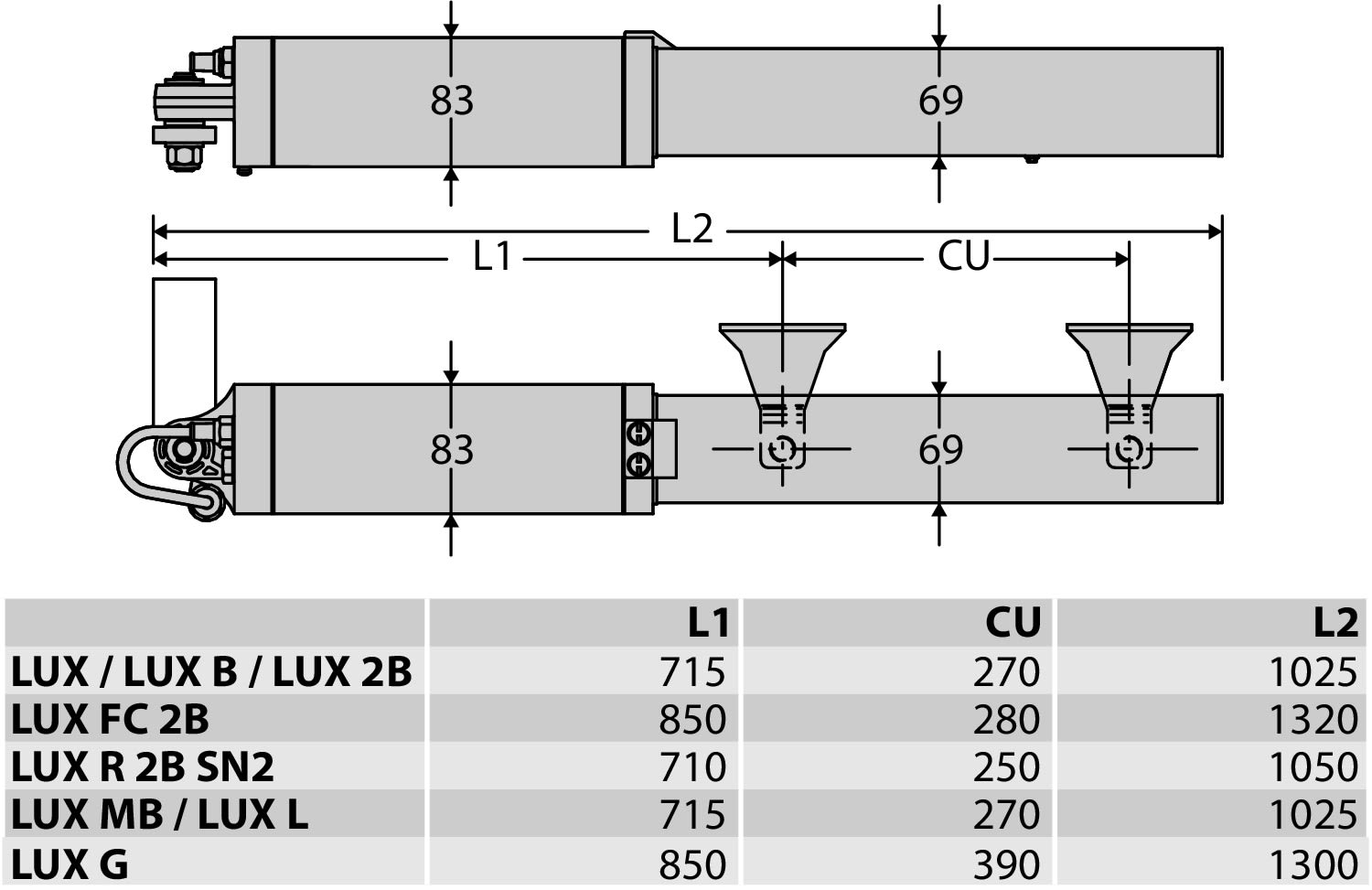 Larghezza max. del battente - 2300 mm