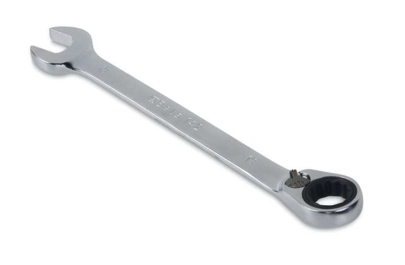 La chiave a cricchetto Beta 142 e ideale per effettuare serraggi veloci e precisi. Il meccanismo a cricchetto, a 72 denti con angolo di ripresa di soli 5?, consente di avvitare e svitare con facilita e rapidita. La levetta di reversibilita permette di agire in un verso o nell'altro con grande agilita. Caratteristiche: ? Poligono piegato di 15? per una buona presa anche quando lo spazio di manovra e limitato ? La testa a bocca fissa e inclinata di 15? rispetto all'asse per ridurre l'angolo di ripresa ? Cricchetto a 72 denti con angolo di ripresa di 5? per serraggi veloci ? Levetta di reversibilita integrata ? Acciaio legato ad alte prestazioni per una maggiore resistenza meccanica alle torsioni e una lunga durata nel tempo ? Trattamenti termici dedicati per un'ottima resistenza all'usura ? Finitura cromata satinata ? Conforme alla norma di riferimento ISO 21982 - ISO 1711