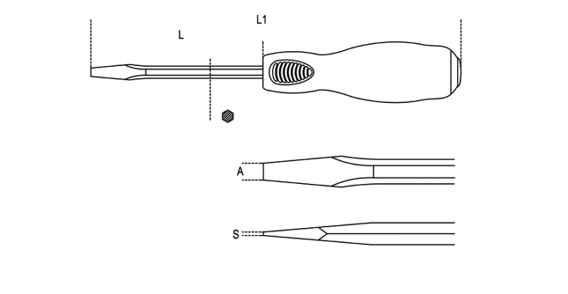 ? Impugnatura bimateriale? Lama esagonale e passante per maggior robustezza e trasmissione della forza? Battente in acciaio