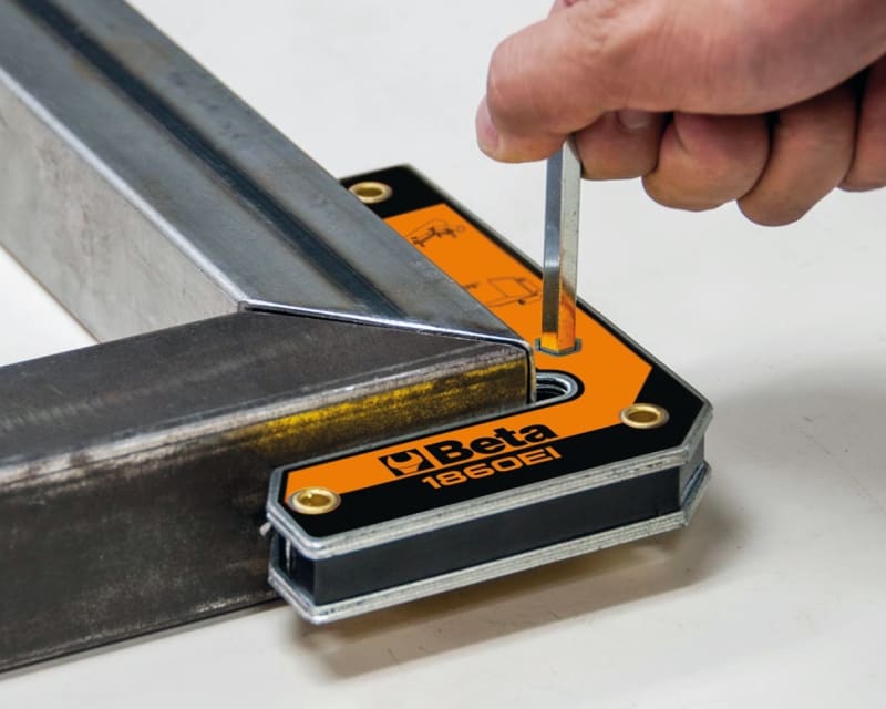 Caratteristiche:? Ideale per bloccare particolari tubolari o piatti? 18Kg di forza magnetica? Con smussi per angoli da 30 e 60?? Con foro esagonale per facilitare il distacco del magnete dal metallo