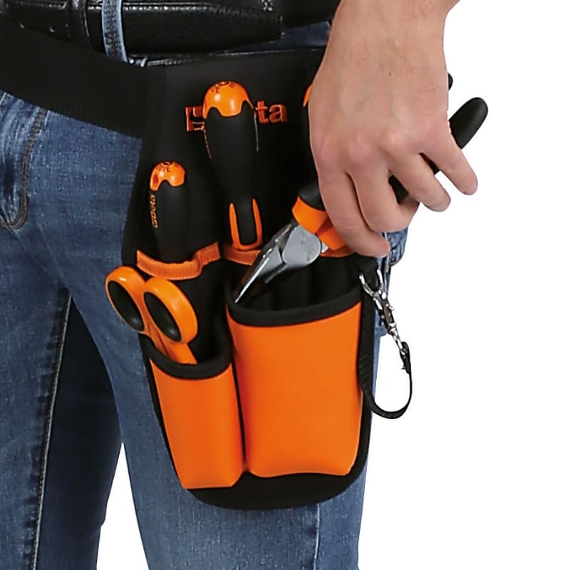 Caratteristiche:? Cinque ampie tasche portautensili? Una taschina frontale porta forbice? Fibbia con moschettone porta nastro adesivo? Cintura regolabile da 70 a 120 cm? 155x285x80 mm