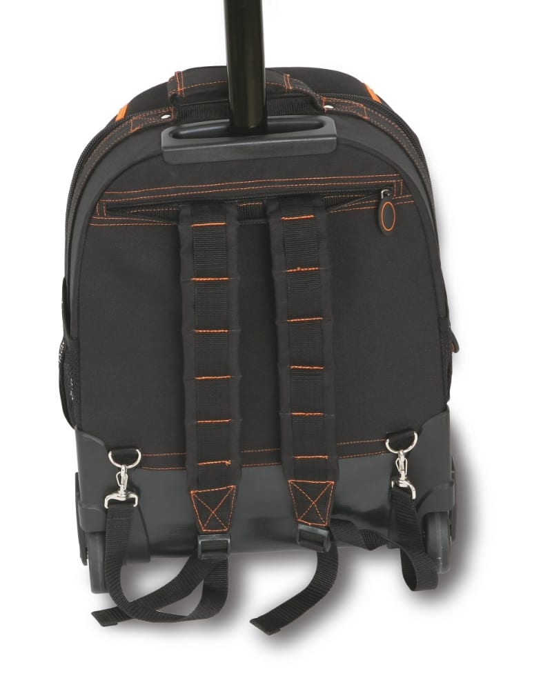 Caratteristiche principali: ? Manico telescopico di trasporto? Ruote integrate nella struttura con copertura anti-polvere per l'impiego come zaino? Due pannelli portautensili removibili? Cinque tasche esterne ? Capiente tasca per pc interna ? Base in materiale resistente all'acqua? 360x200x480 mm - ? 4,5 kg