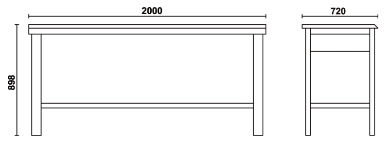Caratteristiche principali: ? Piano di lavoro in legno multistrato con fori per la collocazione di una morsa 1599F/125 - 1599GI/125 (da ordinare separatamente)? Struttura in acciaio con 4 gambe di sostegno? Capacita di carico statico: 600 kg? Ripiano inferiore portaoggetti con capacita di carico 150 kg (uniformemente distribuiti)? Predisposizione per il fissaggio al pavimento2000x930x720 mm