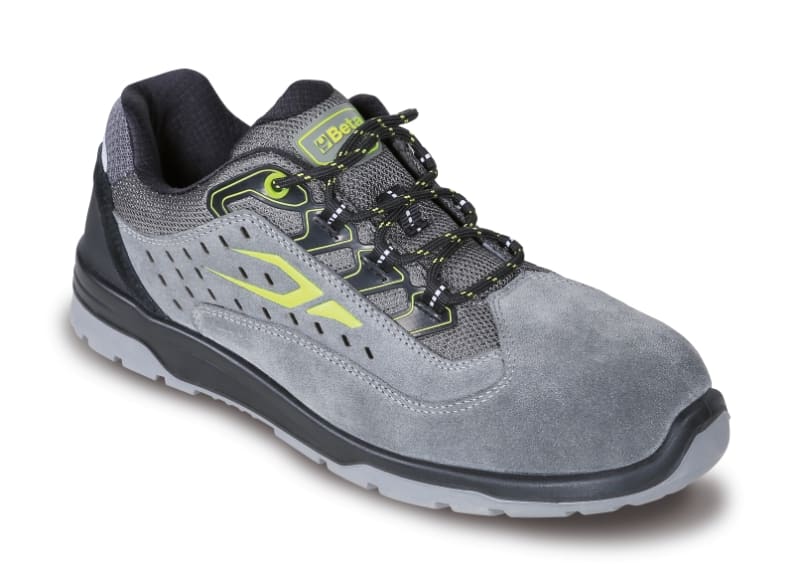 Tomaia:Pelle scamosciata traforata con supporto di stabilita al talloneSuola:Poliuretano bidensitaPuntale:Materiale polimerico, resistenza 200 JouleAntiperforazione:Fibra composita con trattamenti ceramiciSottopiede:Anatomico con rialzo ammortizzante nella zona del tallonePeso:550 (g)Taglie:EU: 35-48 UK: 2,5-13